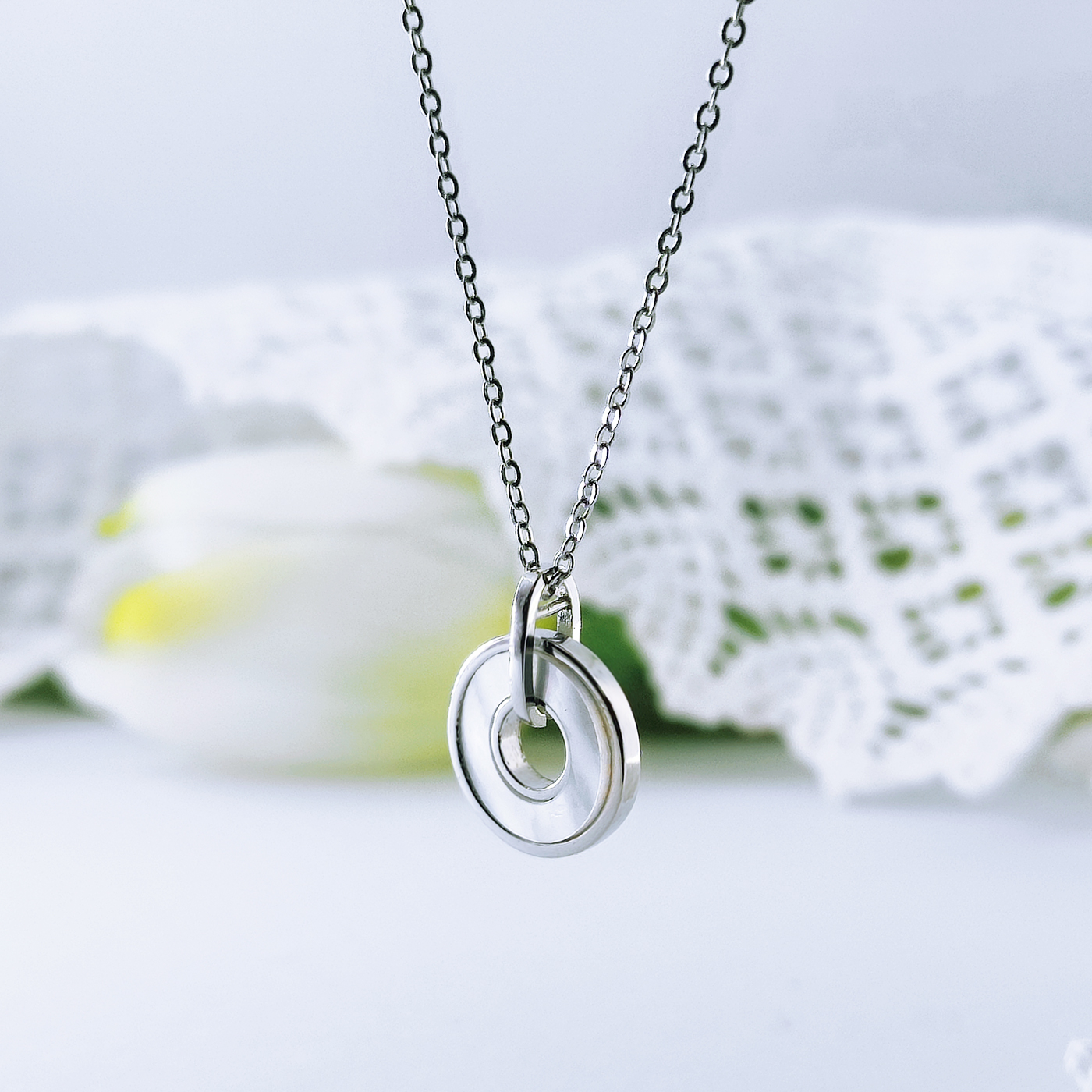 Ezüst gyöngyház medálos nyaklánc