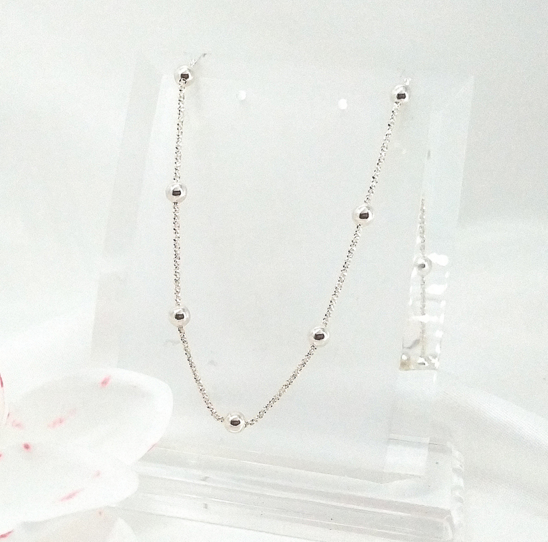 Kedvelt fazonú hengeres nyaklánc gömb díszítéssel.