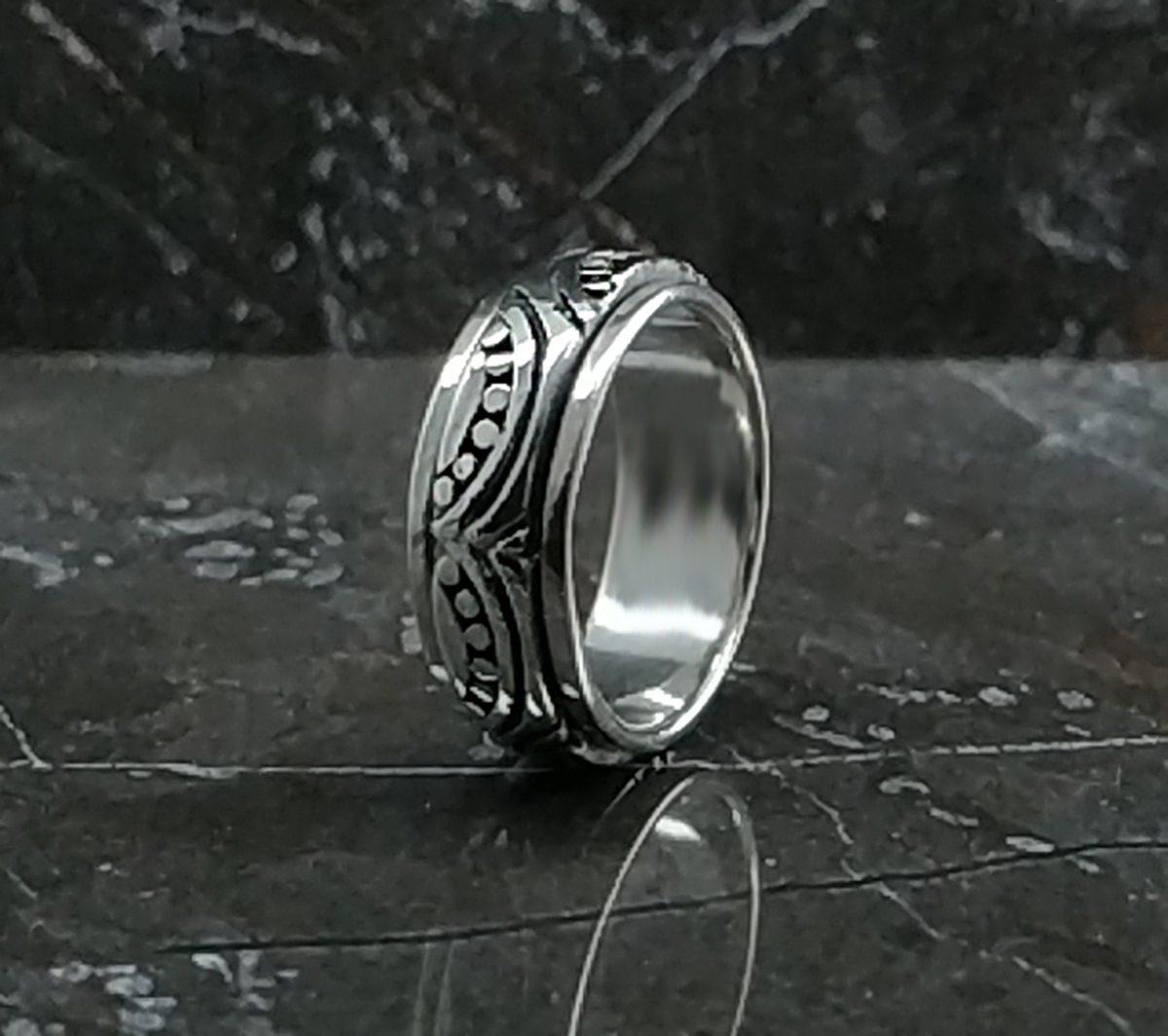 Dupla forgós gyűrű, markáns antikolással díszítve.