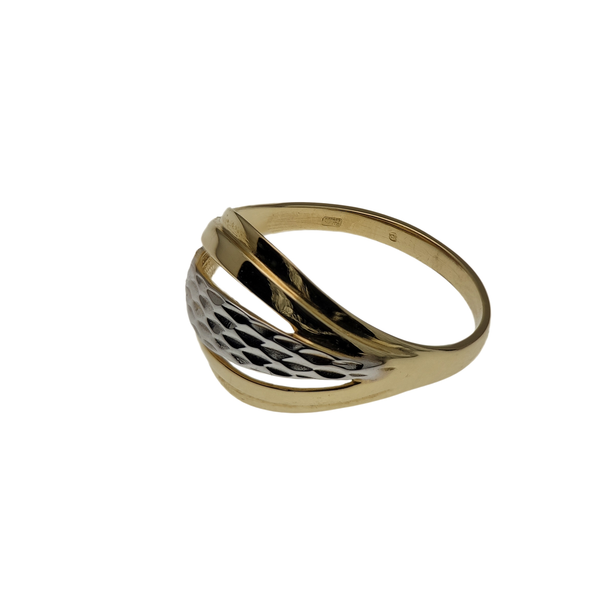 Női arany gyűrű, ródium díszítéssel, kő nélküli fazonban.